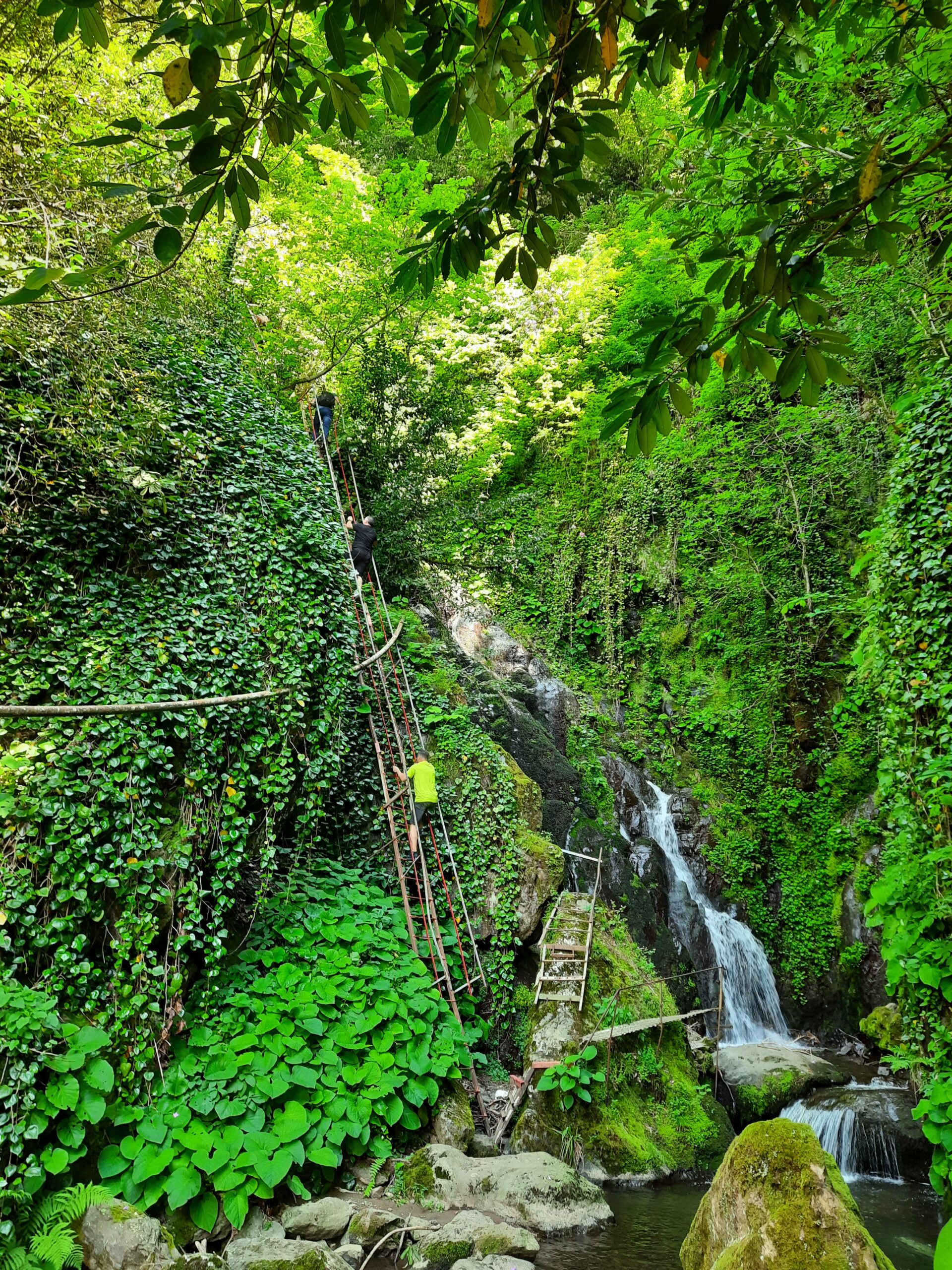 Poziom trudności: Średni lub wysoki zależnie od wybranej trasy. Po drodze gruntowe ścieżki w górach, miejscami ślisko. Część trasy (opcjonalnie) prowadzi po drabinach na zboczu wąwozu, wysokość około 40 metrów.